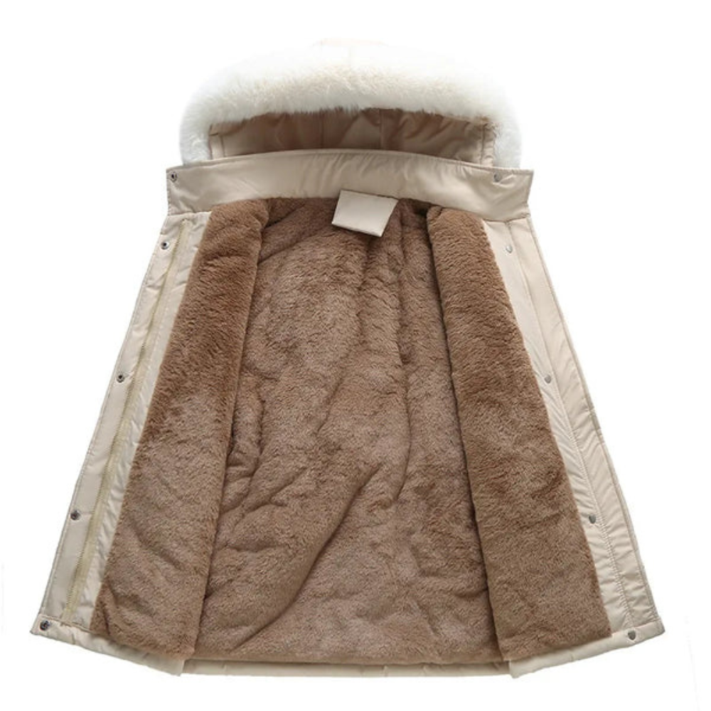 With high quality down padding and a chic design. Our women's KIMMO Warm down jacket has an adjustable waistband to accentuate your curves, a fur hood and three front pockets adorned with our best buttons - an essential piece for a fashionable wardrobe. Made from high quality polyester.