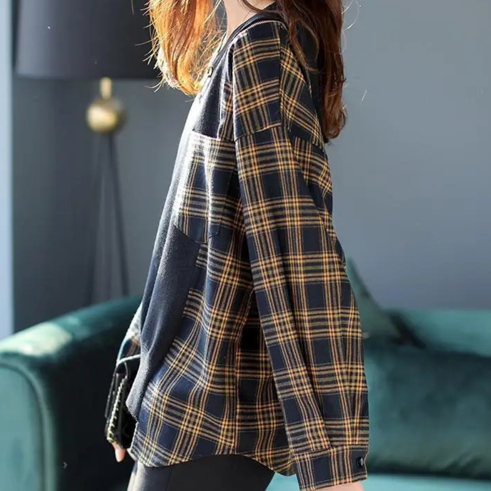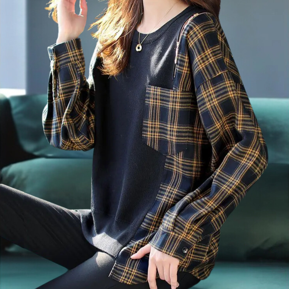 Aikaterini - Elegant women's sweatshirt in trendy check pattern